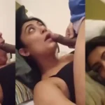 Desi Threesome Blowjob and Fucking A big boob girl is horny. Her parent goes out, and the horny girl calls her lover to come to her home. Her lover comes immediately to fuck his girl. When he comes, his GF welcomes him romantically and takes him to her bedroom. After that, she pushes her lover onto her bed and strips in front of him. She gets naked and shows her nude body to him. Her lover sees his GF’s big boobs and shaved pussy and gets a boner. Later, the horny girl gives an Indian blowjob to him and makes him cum in her mouth.